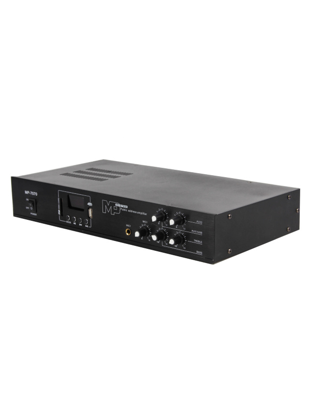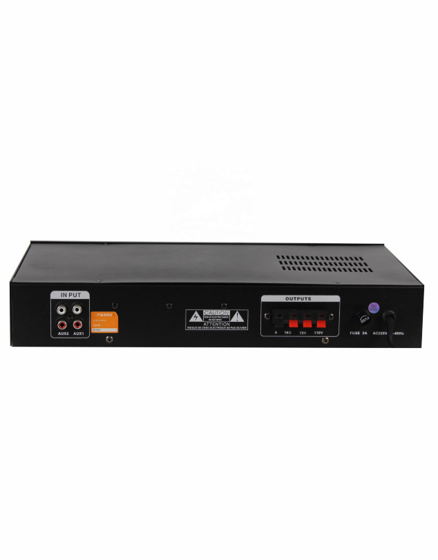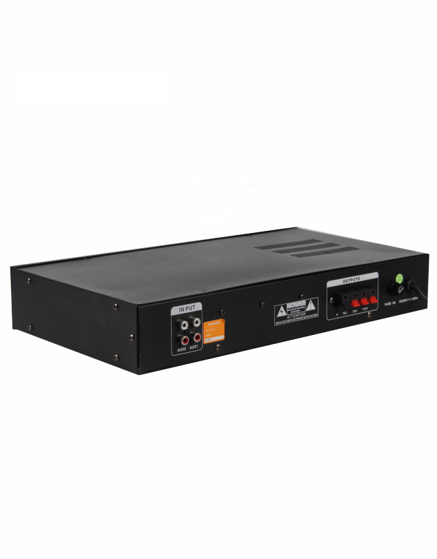 100V xətt çıxışı sayəsində uzaq məsafələrə çoxsaylı tavan/divar dinamiki bağlana bilər. Mikrofon, MP3, AUX və digər mənbələrdən gələn siqnalları gücləndirib təmiz və aydın səs ilə ötürür.